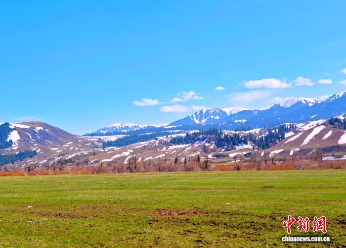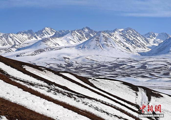 正在海拔较下的天山要地,皑皑黑雪笼罩着绵亘山峦。史玉江 摄